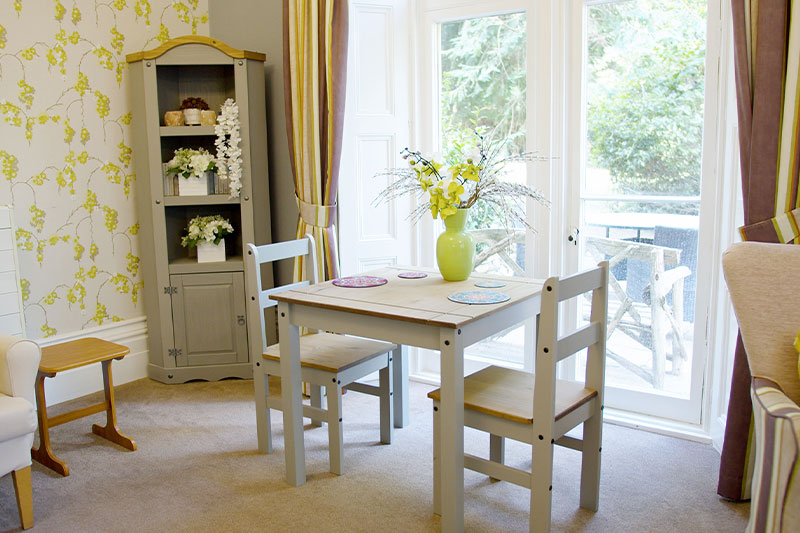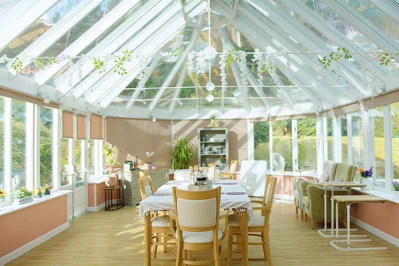 We know how important it is for our residents to remain as independent as possible and to continue making their own choices; none so important as when it comes to food. Our Chef and Cooks create menus based around individual likes and dislikes, using local, fresh produce to create seasonal, home-made dishes. Our Nutrition and Wellness Manager, Leni, works alongside them to assess for any special nutritional needs and feedback is always encouraged to make sure that our menus remain varied and exciting. Mealtimes are always sociable, with a glass of wine on offer and room for relatives who wish to join us. Our conservatory can also be used for private family events or get-togethers.